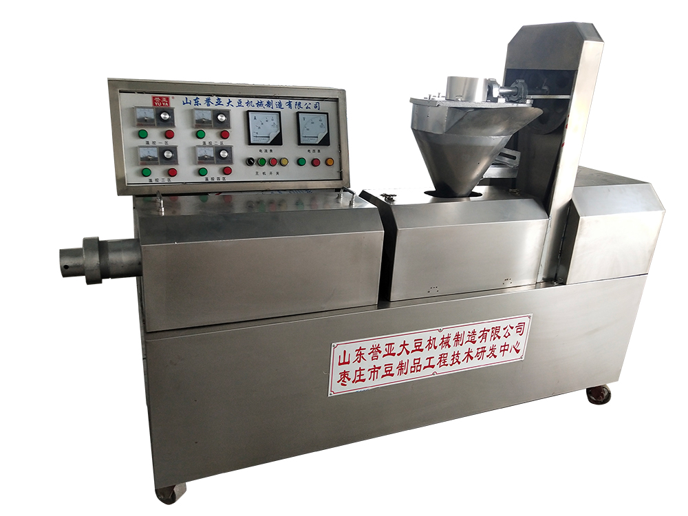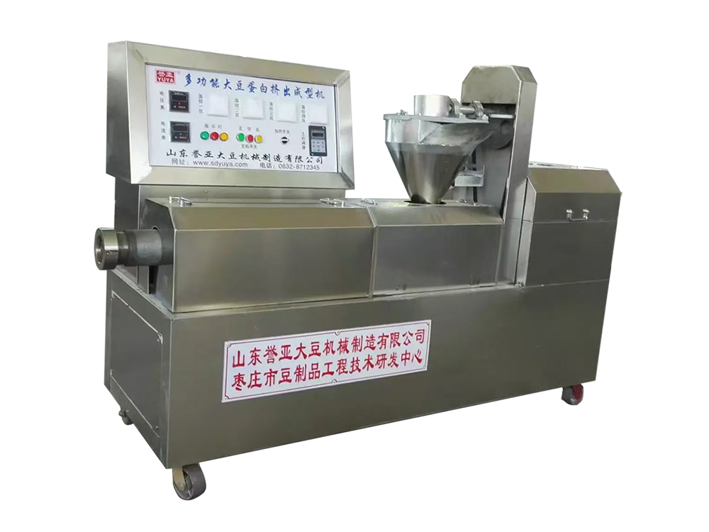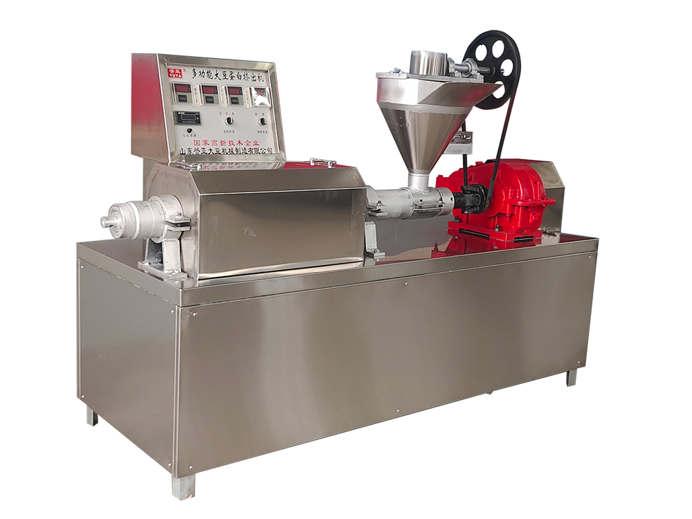 多功能豆制品挤压喷爆机本机采用全不锈钢包装,温度是数显自动控温,加温或降温均有信号灯显示,电流电压大小开机均有显示,自动喂粉可以调速,传动部分是本厂生产的豆制品机械专用减速机,电机架是钢板可调型,机器底部用的高档跑轮,便于移动,冷却部分是自动循环水装置,底部设有大容量的储水箱,正常生产可节约用电量的30% |